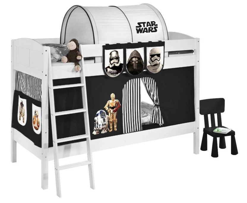 Offre exceptionnelle sur le Lit Superposable Laqué Blanc avec Rideau Noir Star Wars 90×200 cm ! Parfait pour les fans, ce lit allie design et fonctionnalité. Profitez d’un confort optimal et d’un gain de place idéal. Stock limité, commandez vite