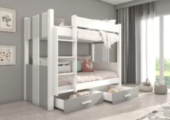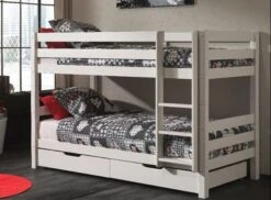 Lit Superposé Blanc Et Bois Sonoma 2 Couchages 80×180 Cm Ou 90×200 Cm Avec Tiroirs De Rangement Luka