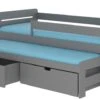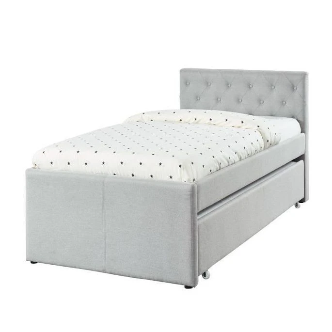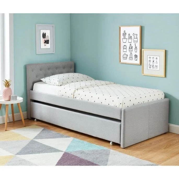 BAHIA Lit Gigogne Enfant Contemporain – Simili Gris Clair – Sommier Inclus – L 90 X L 190 Cm