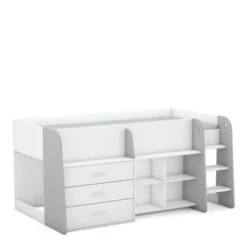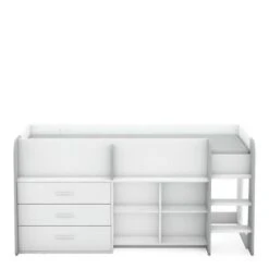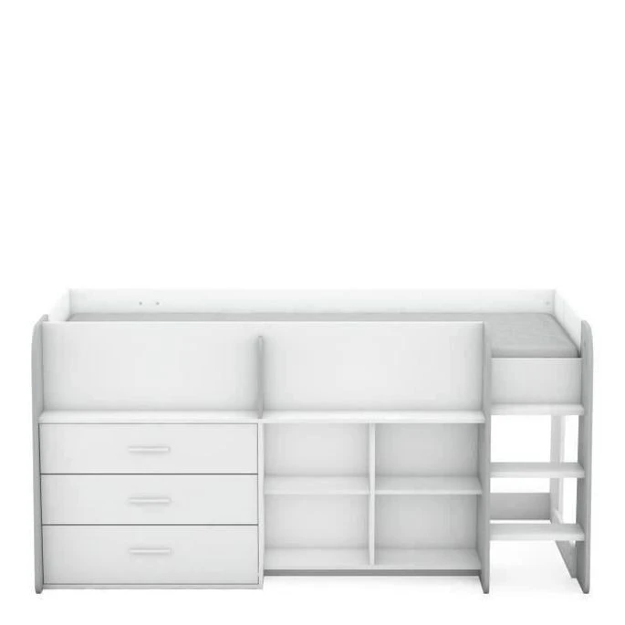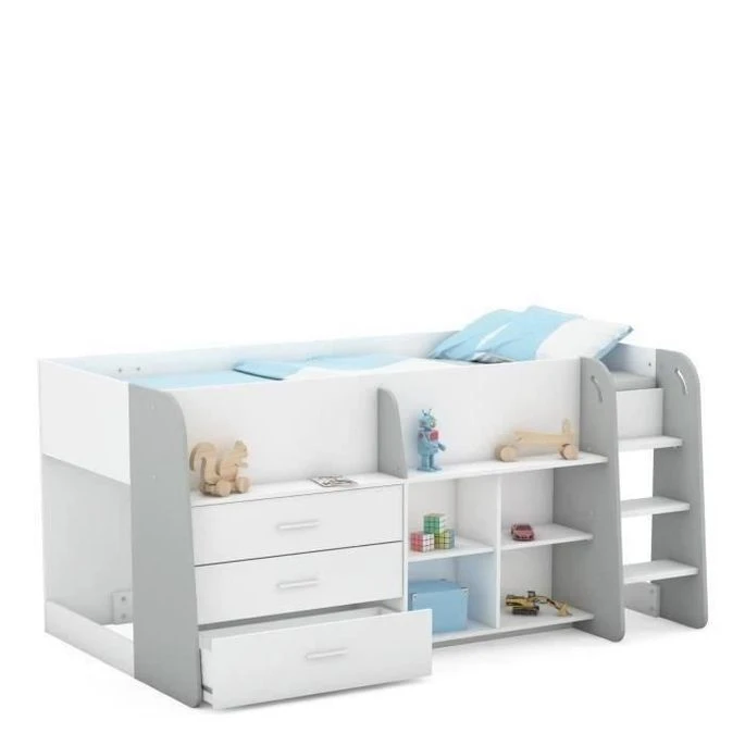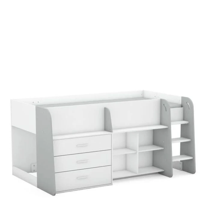 HAPPY Lit Combiné Junior 90×200 Cm – Blanc Mat Et Gris Clair – L 203,4 X H 97,8 X P 120,5 Cm