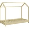Il est entièrement fait en pin massif, et vous pouvez le monter de façon à avoir le couchage au sol ou plus haut en mettant ses pieds en place.