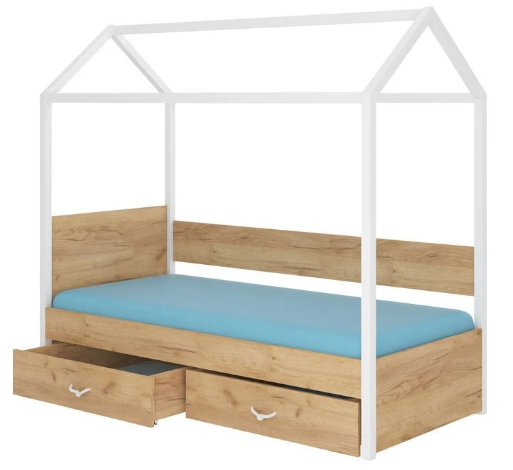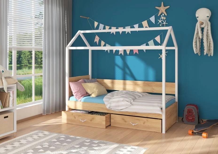 Fabriqué avec soin en bois de pin vernis blanc mat et bois MDF oak robuste et esthétique.nous utilisons des vernis écologiques, peints au pistolet, pour protéger le lit. Grâce à trois couches de vernis appliquées avec précision, notre lit garantit une résistance exceptionnelle aux dommages mécaniques et à divers types de salissures.