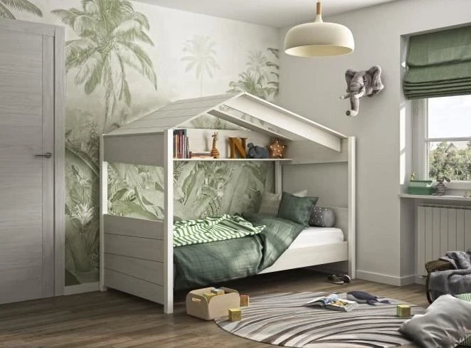 ATIRI Lit enfant cabane – Contemporain – Décor châtaignier blanchi