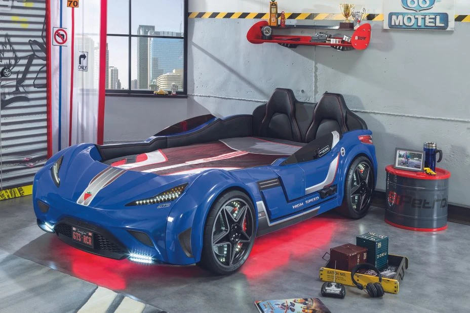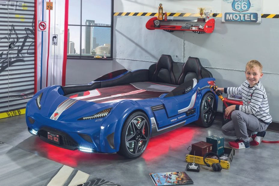 Créez une chambre à thème passionnante pour votre enfant avec ce lit de voiture de sport GTE. En plus du lit, vous trouverez sur notre site des bureaux, des armoires, des tapis, des lampes et du linge de lit inspirés du monde automobile pour compléter la décoration de la chambre. Offrez à votre enfant une expérience de sommeil unique et stimulante avec ce lit ludique.