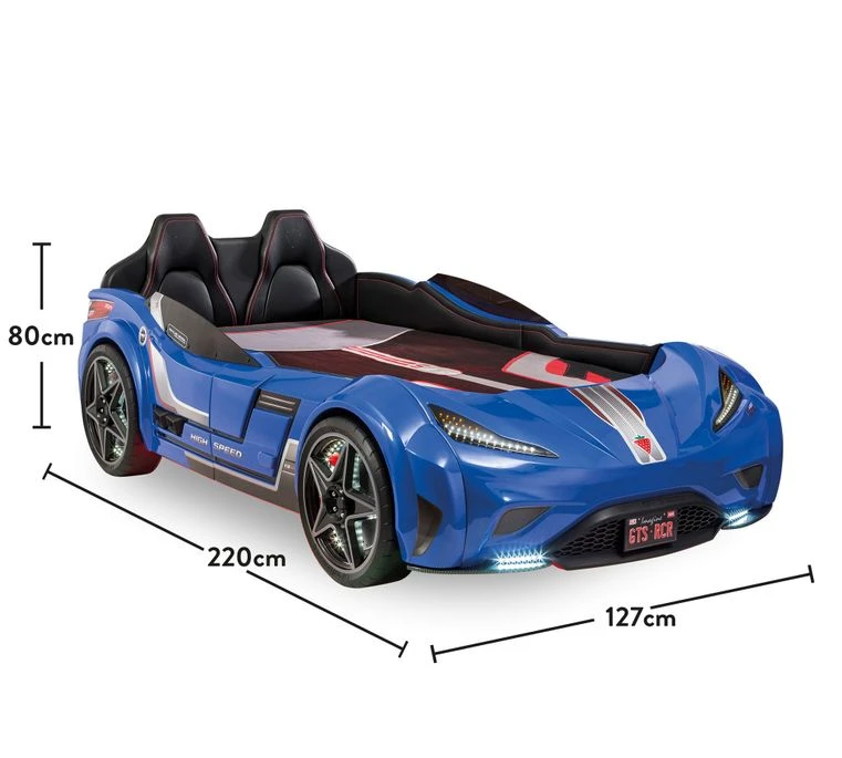 Effets Lumineux et Sonores : Le lit est équipé d’effets lumineux et sonores contrôlables via une télécommande. Il comporte un éclairage LED monté sur les jantes et dans le soubassement pour une expérience de conduite réaliste.