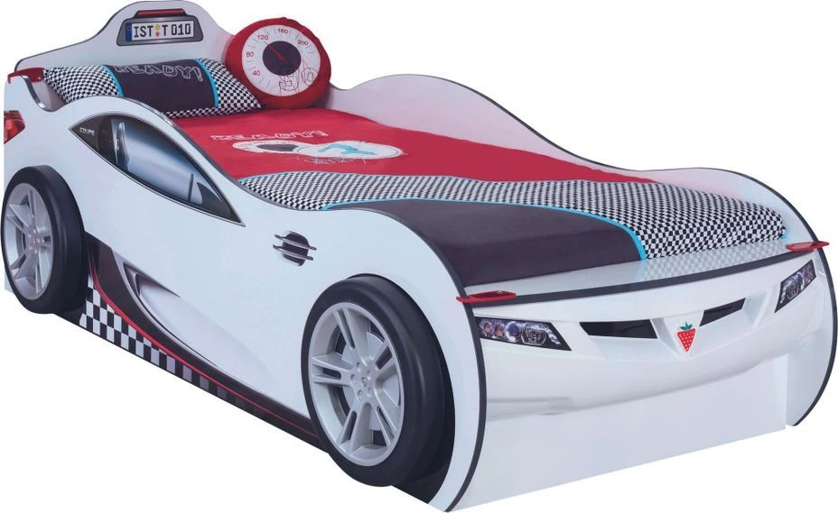 Les dimensions en cm sont de L 107 x H 82 x P 209, offrant suffisamment d’espace pour votre enfant pour dormir confortablement. La structure en MDF, les pare-chocs et les roues en ABS ajoutent de la durabilité et de la stabilité à notre lit, qui peut supporter jusqu’à 100 kg. Disponible en rouge et blanc pour s’adapter à tous les styles de chambre. Commandez dès maintenant pour offrir à votre enfant une chambre unique et amusante !