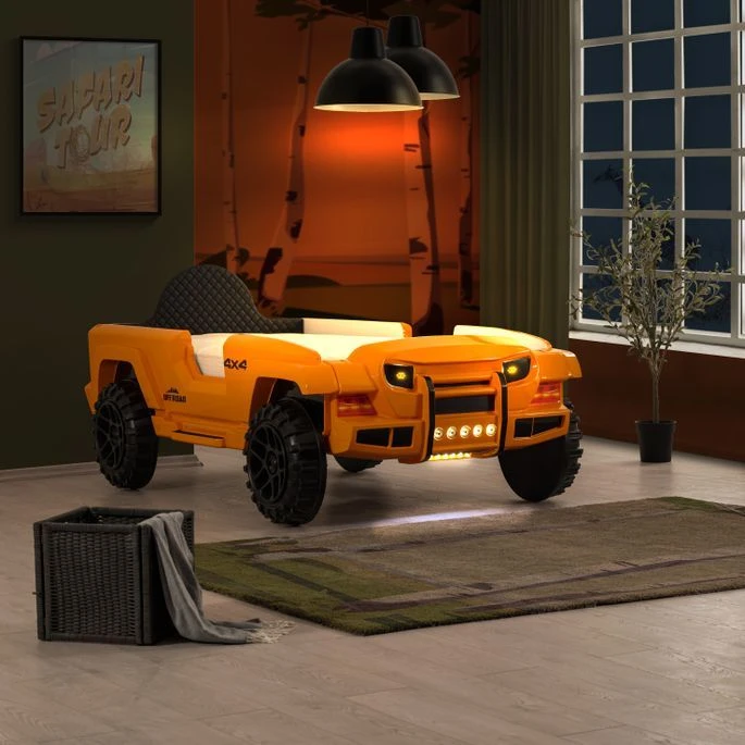 Donnez à votre enfant une aventure amusante tous les soirs avec le lit enfant version Jeep orange.
