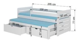 Fabriqué avec soin en bois de pin vernis blanc mat, notre lit gigogne 2 couchages est à la fois robuste et esthétique. Nous accordons une grande importance à la qualité et à l’environnement, c’est pourquoi nous utilisons des vernis écologiques, peints au pistolet, pour protéger le lit. Grâce à trois couches de vernis appliquées avec précision, notre lit garantit une résistance exceptionnelle aux dommages mécaniques et à divers types de salissures, assurant ainsi une durabilité à toute épreuve.