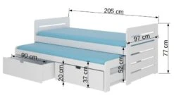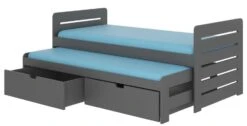 Fabriqué avec soin en bois de pin vernis gris graphite mat, notre lit gigogne 2 couchages est à la fois robuste et esthétique. Nous accordons une grande importance à la qualité et à l’environnement, c’est pourquoi nous utilisons des vernis écologiques, peints au pistolet, pour protéger le lit. Grâce à trois couches de vernis appliquées avec précision, notre lit garantit une résistance exceptionnelle aux dommages mécaniques et à divers types de salissures, assurant ainsi une durabilité à toute épreuve.