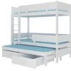 Lit mezzanine avec protection contre les chutes et échelle conformément aux normes EN 747 relatives aux lits mezzanines et aux lits superposés pour enfants.