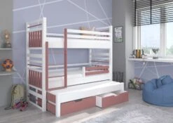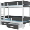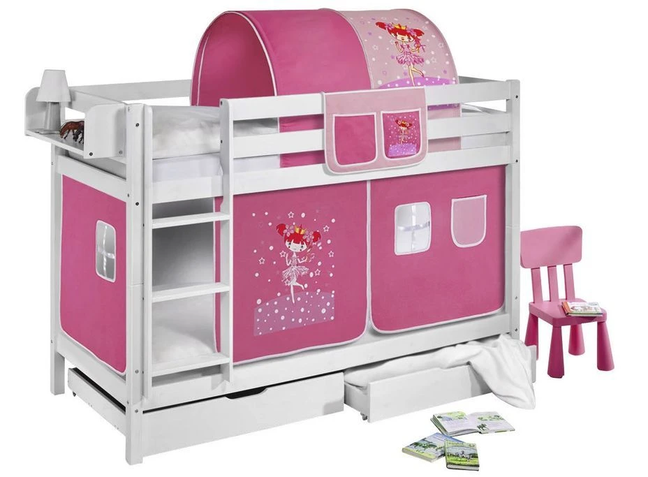Lit mezzanine avec protection contre les chutes et échelle conformément aux normes EN 747 relatives aux lits mezzanines et aux lits superposés pour enfants.