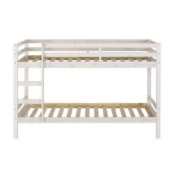 Quelques manipulations simples permettent de transformer le lit blanc en pin massif en deux lits individuels.