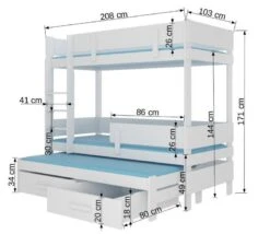 Offrez à vos enfants un espace de rêve où ils pourront dormir confortablement et s’amuser en toute quiétude. Le lit superposé 3 personnes de la collection Kopa est la solution idéale pour une chambre d’enfant fonctionnelle et esthétique. Ne laissez plus l’espace limiter vos possibilités, choisissez Kopa pour maximiser l’utilisation de votre espace tout en ajoutant une touche de charme à votre intérieur.