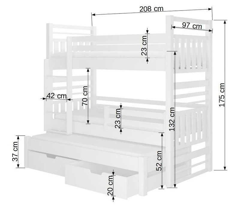 Il est équipé d’une echelle facile d’accès, ainsi que de deux grand tiroirs de 100 x 80 x 20 cm chacun pour ranger des affaires.