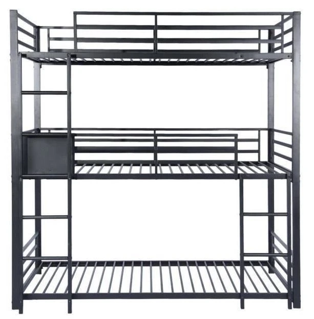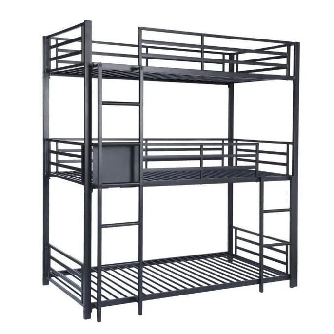 En résumé, notre lit superposé 3 niveaux en métal noir avec un couchage de 90×190 cm est une solution élégante et pratique pour optimiser l’espace dans une chambre. Sa construction en métal de qualité supérieure, ses barrières de sécurité et son design moderne en font un choix idéal pour les familles qui cherchent un lit superposé fiable et confortable.
