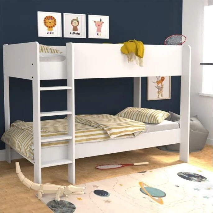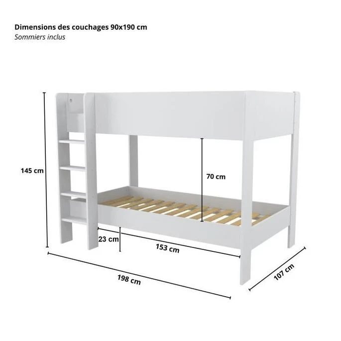 Lit Superposé – 90 X 190 Cm – Décor Blanc – Sommiers Inclus – HOPE