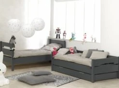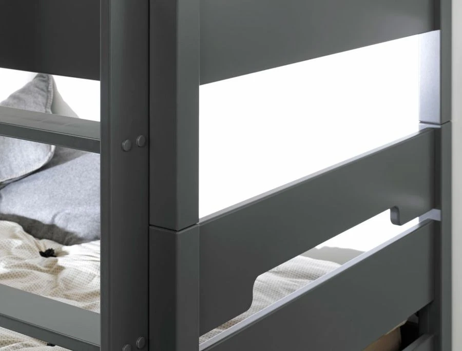 L’échelle peut être placée à gauche ou à droite, et ses sommiers en pin massif garantissent un grand confort pour de bonnes nuits de sommeil.
