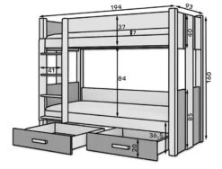 Ce lit superposé est proposé avec deux couchages au choix soit 80×180 cm ou de 90×200 cm. La sécurité étant notre priorité, nous avons installé une échelle fixe pour faciliter l’accès au lit supérieur. Vous pouvez être rassuré(e) quant à la stabilité et la sécurité de notre lit pour vos enfants.
