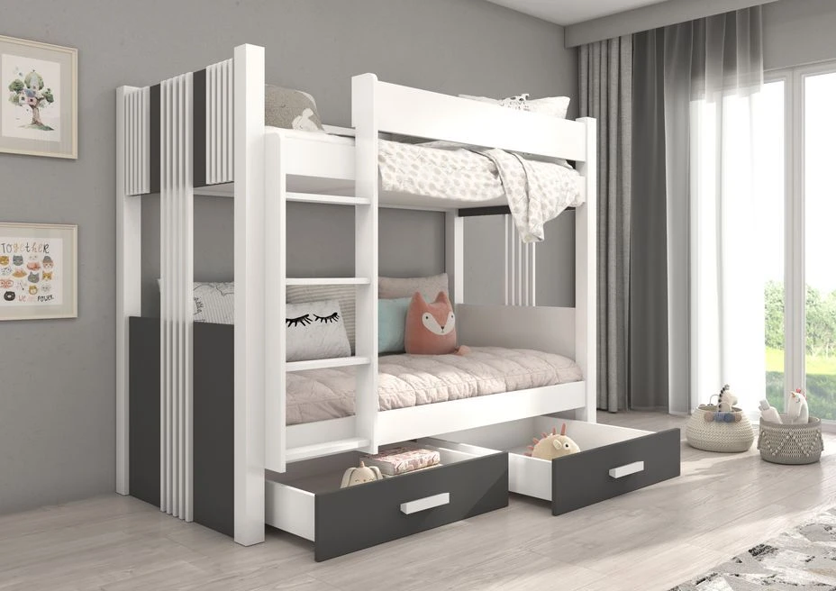 Ce lit superposé est proposé avec deux couchages au choix soit 80×180 cm ou de 90×200 cm. La sécurité étant notre priorité, nous avons installé une échelle fixe pour faciliter l’accès au lit supérieur. Vous pouvez être rassuré(e) quant à la stabilité et la sécurité de notre lit pour vos enfants.