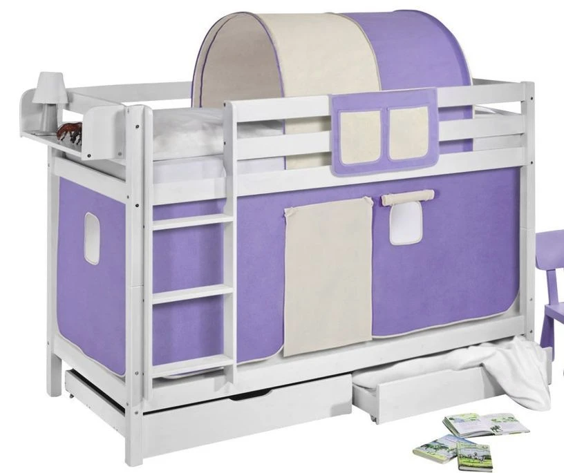 En option, le tunnel, l’étagère, les matelas mousse (de fabrication Européenne épaisseur 14 cm )et le set de 2 tiroirs L 185 x L 85 x H 23 cm par tiroir et l’étagère l 80 cm.