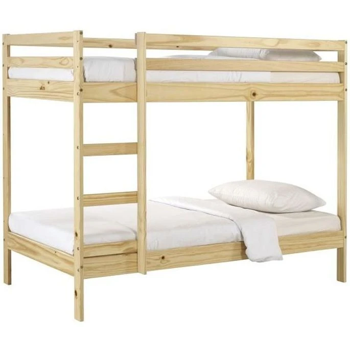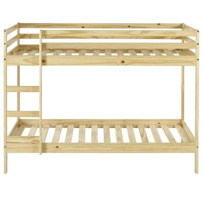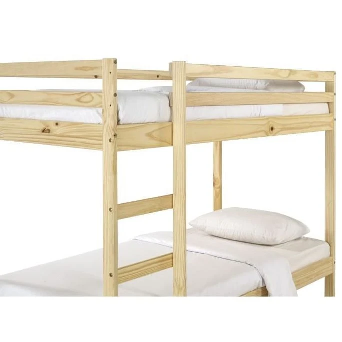 Lit Superposé Enfant – Bois Pin Massif – Naturel – Sommiers Inclus – 2 X 90 X 190 Cm – FOSTER