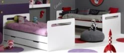 Vous pouvez ajouter en option un tiroir de lit sur roulette, vendu séparément, qui se révèlera vite indispensable en tant qu’espace de rangement.