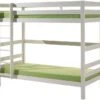 Quelques manipulations simples permettent de transformer le lit blanc en pin massif en deux lits individuels ou en lits mezzanines, lits superposés ou lit surélevé ludique, avec un kit de modification.