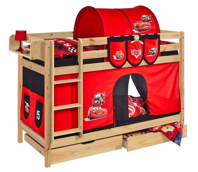 En option, le tunnel, l’étagère, les matelas mousse (de fabrication Européenne épaisseur 14 cm )et le set de 2 tiroirs L 185 x L 85 x H 23 cm par tiroir.