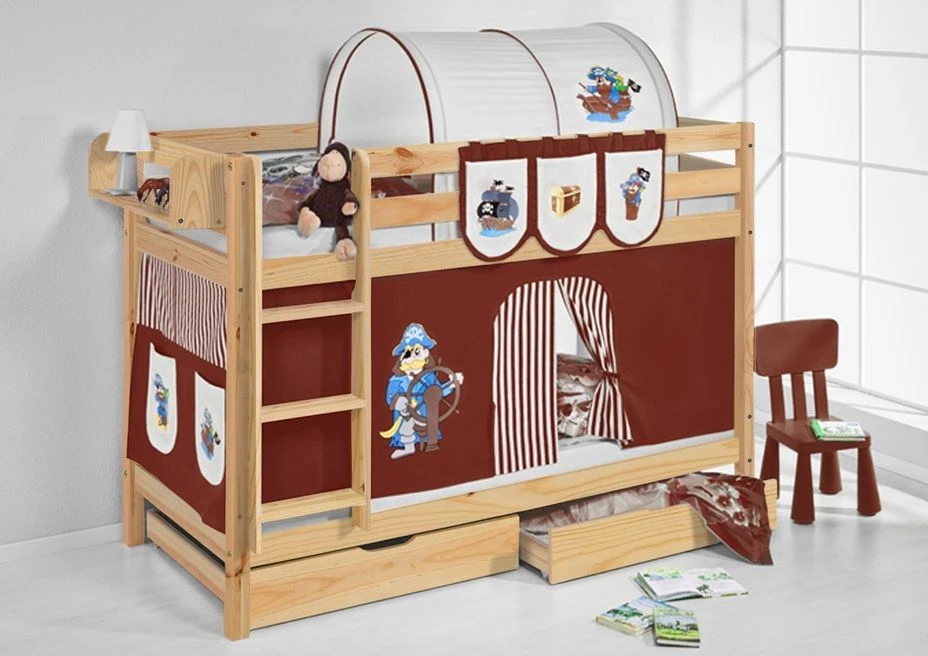 En option, le tunnel, l’étagère, les matelas mousse (de fabrication Européenne épaisseur 14 cm )et le set de 2 tiroirs L 185 x L 85 x H 23 cm par tiroir.