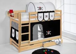 Quelques manipulations simples permettent de transformer le lit blanc en pin massif en deux lits individuels.