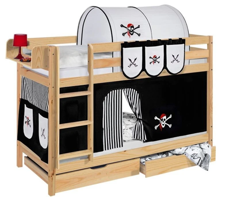En option, le tunnel, l’étagère, les matelas mousse (de fabrication Européenne épaisseur 14 cm )et le set de 2 tiroirs L 185 x L 85 x H 23 cm par tiroir.