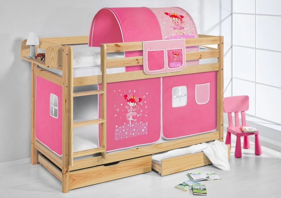 En option, le tunnel, l’étagère, les matelas mousse (de fabrication Européenne épaisseur 14 cm )et le set de 2 tiroirs L 185 x L 85 x H 23 cm par tiroir.