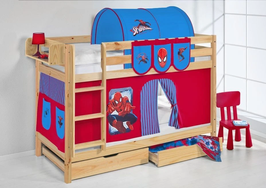En option, le tunnel, l’étagère, les matelas mousse (de fabrication Européenne épaisseur 14 cm )et le set de 2 tiroirs L 185 x L 85 x H 23 cm par tiroir.