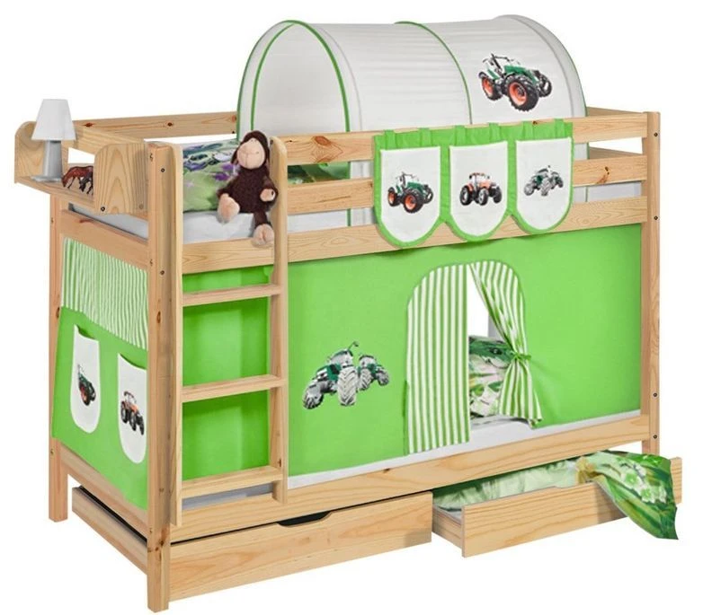 En option, le tunnel, l’étagère, les matelas mousse (de fabrication Européenne épaisseur 14 cm )et le set de 2 tiroirs L 185 x L 85 x H 23 cm par tiroir.