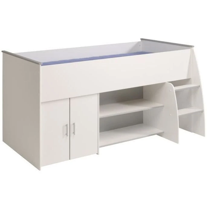 MOVIE Lit Combiné Enfant 90×200 Cm Avec Sommier – Style Contemporain – Décor Blanc – L 200 X L 90 Cm
