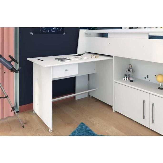PARISOT Lit Combiné Enfant Avec Bureau Contemporain Décor Blanc – Sommier Inclus -l90 X L200 Cm – DAVE